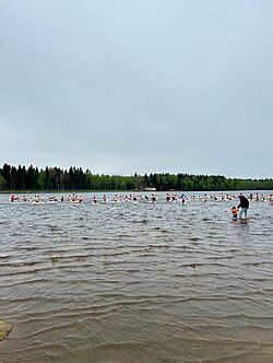 Bei wunderbarem Wetter und ca. 15 °C Wassertemperatur ließen es sich die zahlreichen kleinen und großen Anbader nicht nehmen, sich in die Fluten zu stürzen und einen der begehrten Preise, die in Luftballons versteckt waren, zu erobern. Lauthals unterstützt wurden sie durch die über 2.000 Gäste sowie durch Live-Musik der Leipziger Band The Beefees.