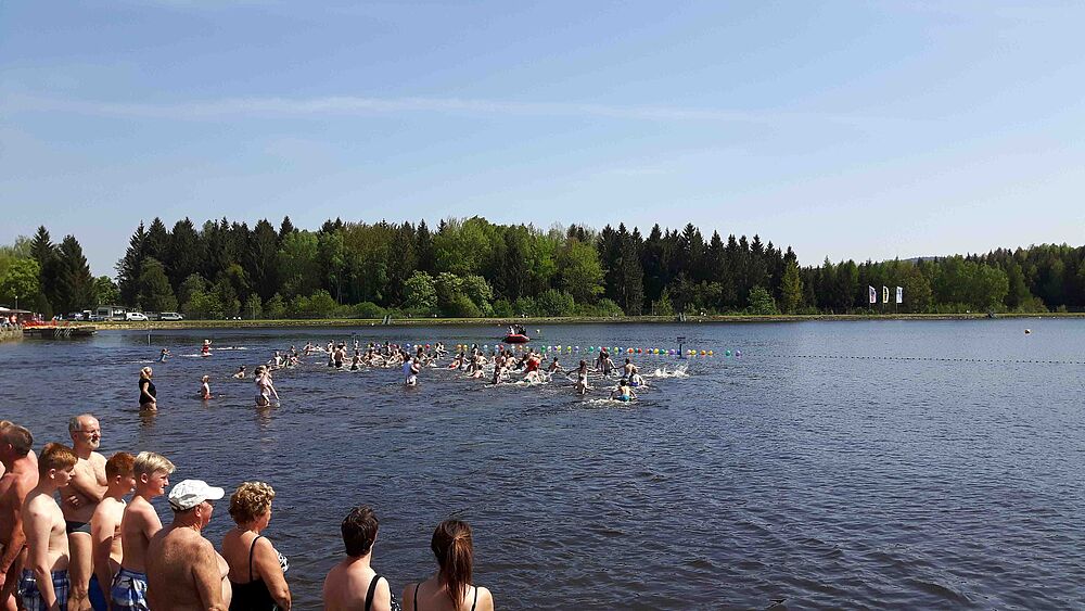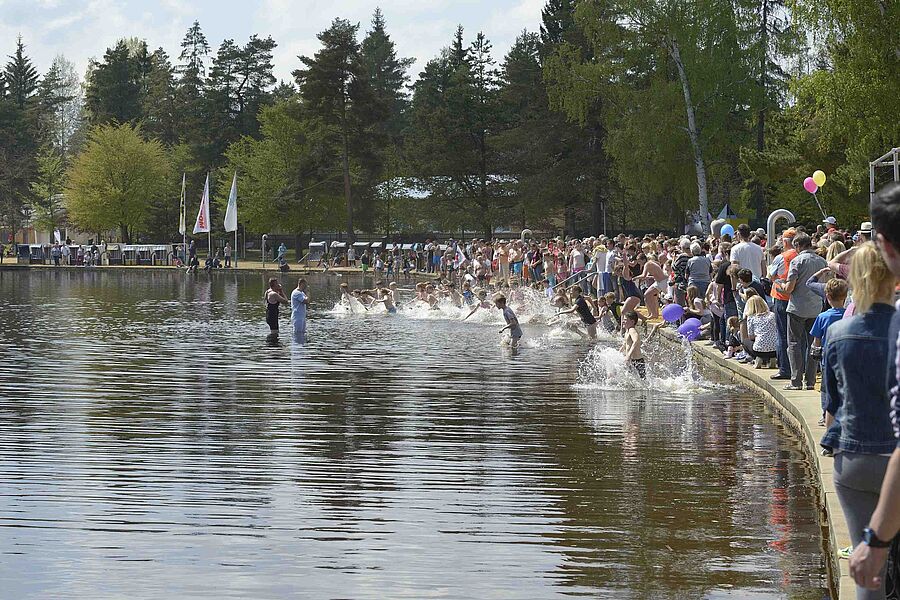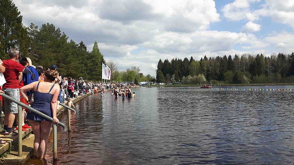 Die negativen Schlagzeilen im Vorfeld konnten dem Start in die diesjährige Bade- und Eventsaison nichts anhaben. Im Gegenteil: ca. 200 mutige Wasserratten sprangen am vergangenen Samstag, den 06.05.2023 beherzt in den Filzteich, um zum einen mit ihrer Energie den Filzteich zu erwärmen, aber um vor allem einen der begehrten Preise zu ergattern. Dass die Temperatur im kühlen Nass nur 16°C betrug, davon war bei den Anbadern nichts zu spüren. Überall glückliche zufriedene Gesichter, gute Laune und das bei bestem frühlingshaften Wetter – so erfolgreich kann nun die Saison beginnen!