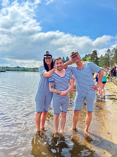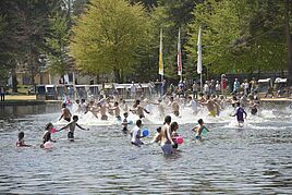 Etwa 200 tapfere Wasserratten sprangen gut gelaunt in das 15°C kalte Wasser, um sich einen der begehrten Preise zu sichern. Überall gab es strahlende Gesichter, ausgelassene Stimmung und dazu bestes Frühlingswetter. So macht der Start in die Badesaison richtig Spaß!