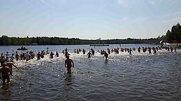 Bei wunderbarem Wetter und ca. 15 °C Wassertemperatur ließen es sich die zahlreichen kleinen und großen Anbader nicht nehmen, sich in die Fluten zu stürzen und einen der begehrten Preise, die in Luftballons versteckt waren, zu erobern. Lauthals unterstützt wurden sie durch die über 2.000 Gäste sowie durch Live-Musik der Leipziger Band The Beefees.