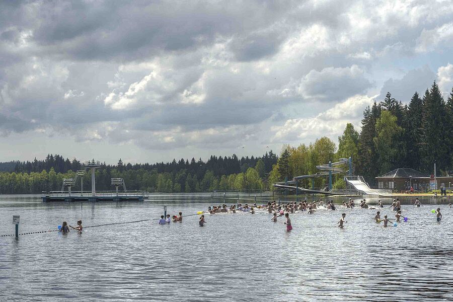 Strahlend blauer Himmel mit angenehmen frühsommerlichen Temperaturen und 17°C Wassertemperatur: Perfektes Anbadewetter erwartete am vergangenen Samstag über 2.100 Besucher an einer der ältesten Talsperren Sachsens, dem Filzteich. Mit dem Anbaden mit Silberstrom wird seit vielen Jahren traditionell Anfang Mai die Bade- und Eventsaison am Strandbad Filzteich eröffnet.