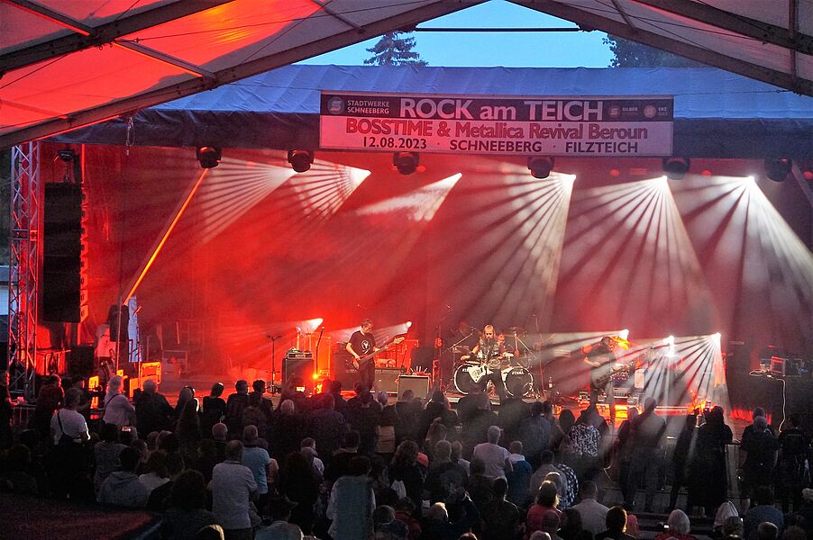 Bei hochsommerlichem Wetter und ausgelassener Stimmung strömten am 9. August mehr als 1.500 Musikfans zum beliebten Event SILBERSTROM Rock am Teich an den Schneeberger Filzteich. Der Höhepunkt des Abends: ein fulminanter Auftritt der Rammstein-Tribute-Band Feuerengel, die ihrem Ruf als Europas beste Tribute-Band mehr als gerecht wurden.