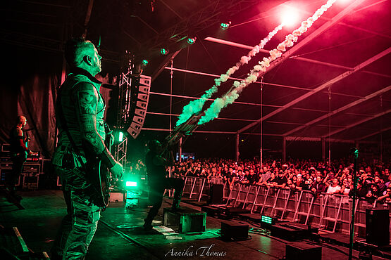 Ab 22.30 Uhr begeisterte dann VOLTBEAT mit perfektem Gitarrensound, tiefen Bässen und einer durchdringenden Stimme. Die europaweit erfolgreiche Volbeat-Tribute-Band lieferte eine energiegeladene Show mit ihrem einzigartigen Mix aus Heavy Metal, Rock’n’Roll, Punkrock, Country und Blues - ganz nach ihrem Vorbild, der dänischen Band Volbeat. Die authentische Performance und der unverwechselbare Live-Sound ließen die Fans voll auf ihre Kosten kommen!
